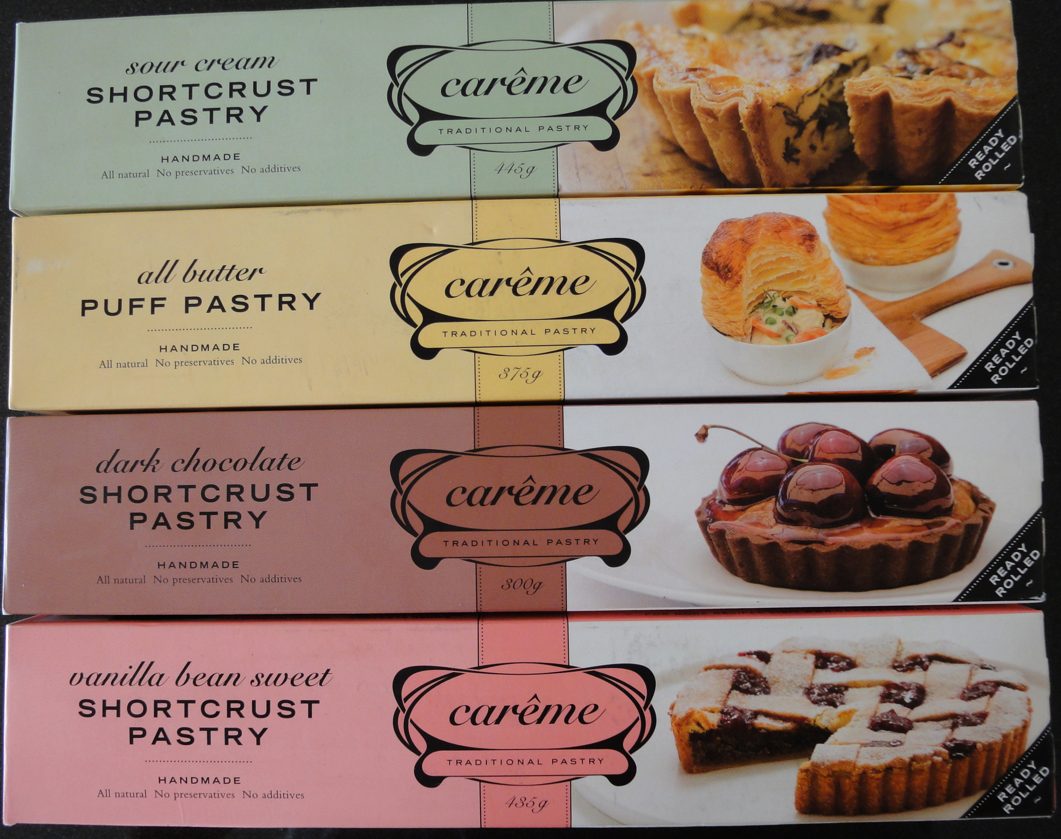 It is hard to explain how good Carême frozen pastries are so I recommend you give it a go. All kinds – the puff, the vanilla bean shortcrust, the sour cream shortcrust and the chocolate pastries – are unbeatable in taste and practicality (ready rolled). Yes, it is pricey ($11 a pack) but I can’t be bothered making average pastry when I have the convenience of frozen deliciousness. It seems that some of Sydney’s best chefs haven’t resisted the temptation either and source their puff pastry from Carême.