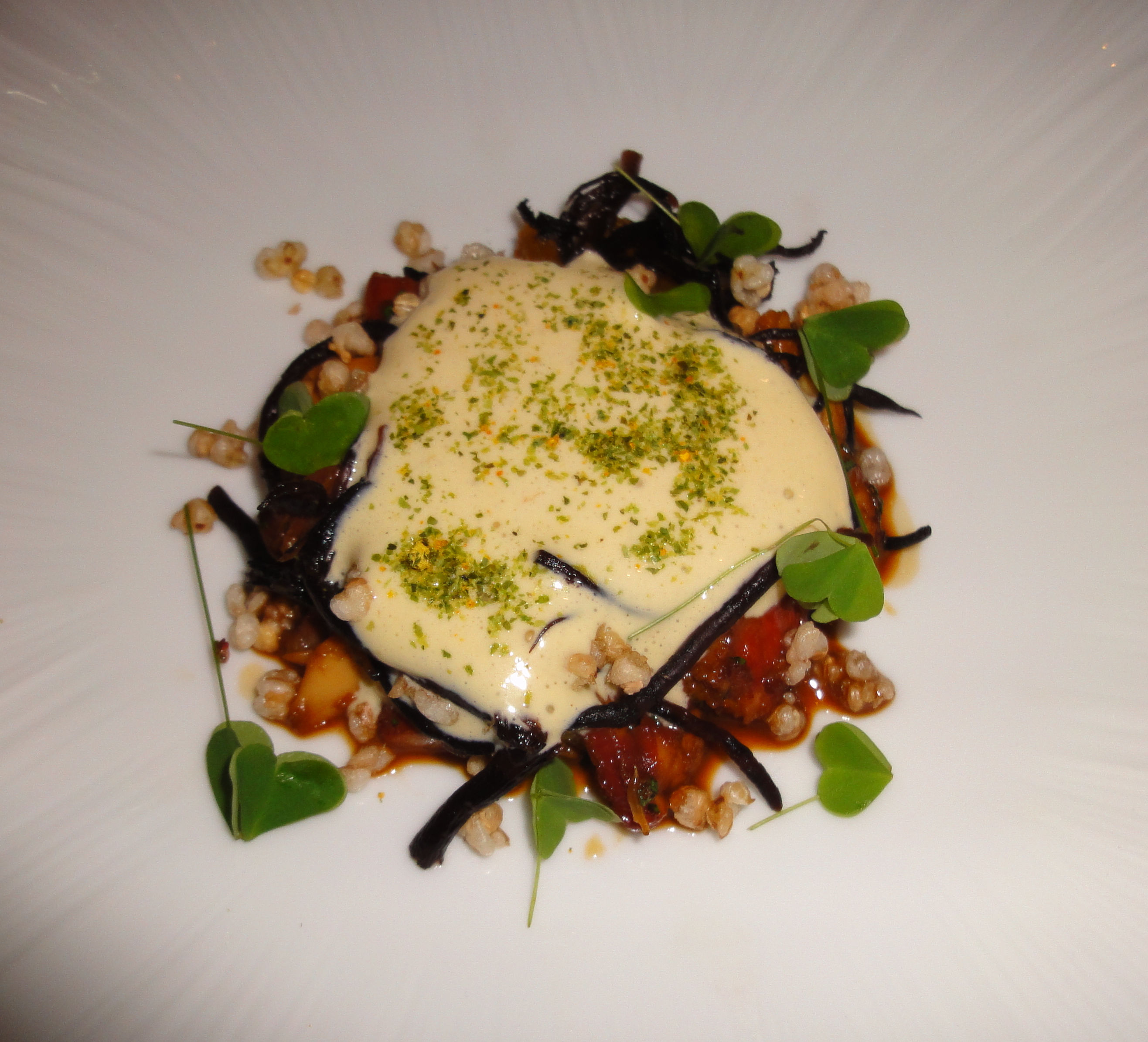 “Soy glazed smoked eel, puffed buckwheat, sea urchin cream, hijiki seawead, nori and orange” would not necessarily sound attractive to everyone…but it was stunning.
