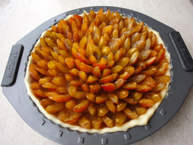Step 4 – Cook the tart: Cook the tart in the oven at 220 degrees for 40 minutes or until the tips of the plums are slightly charcoal.