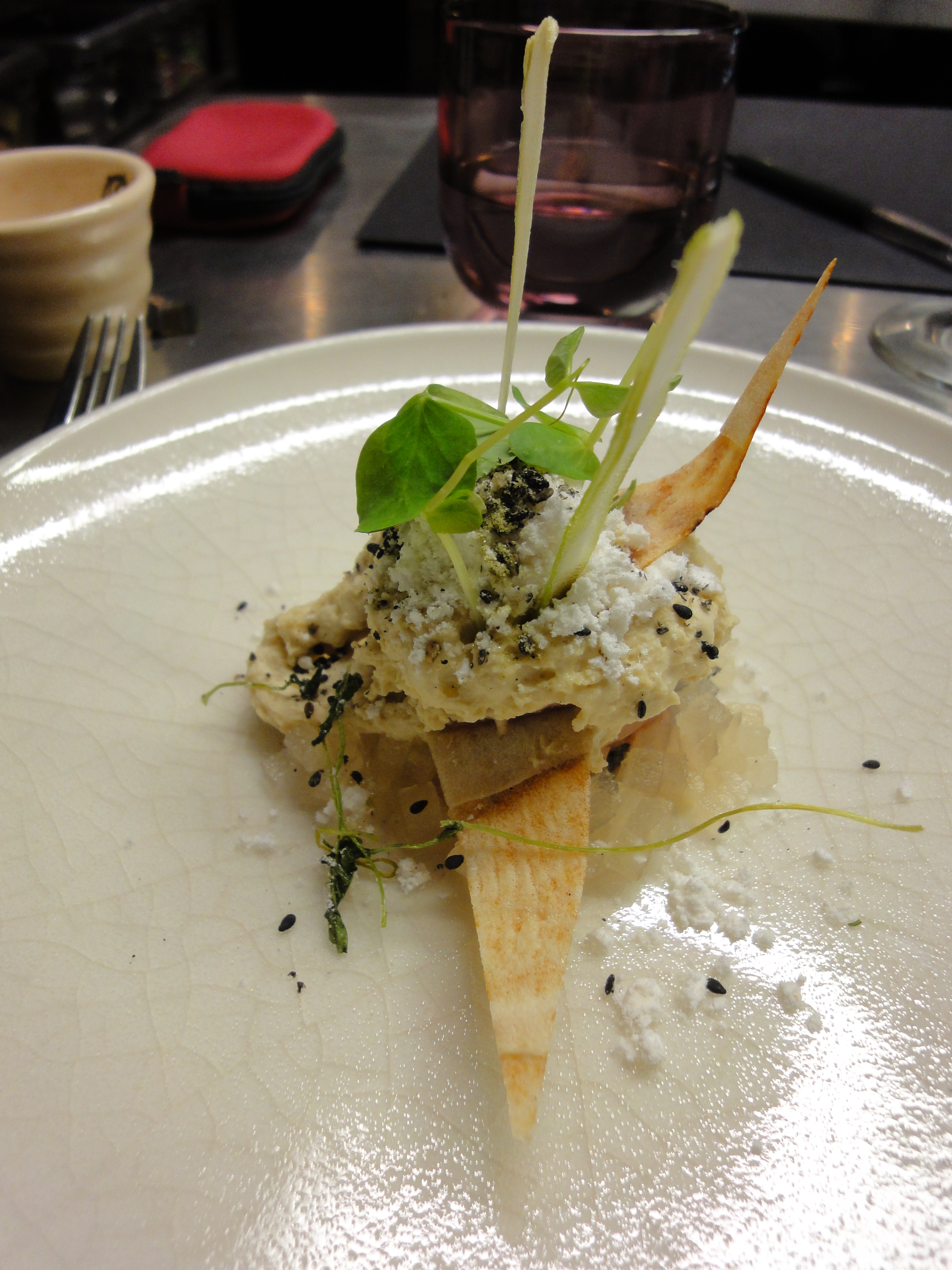 “Purity” – Soy and sake flounder with tendon, clam and edible flowers
