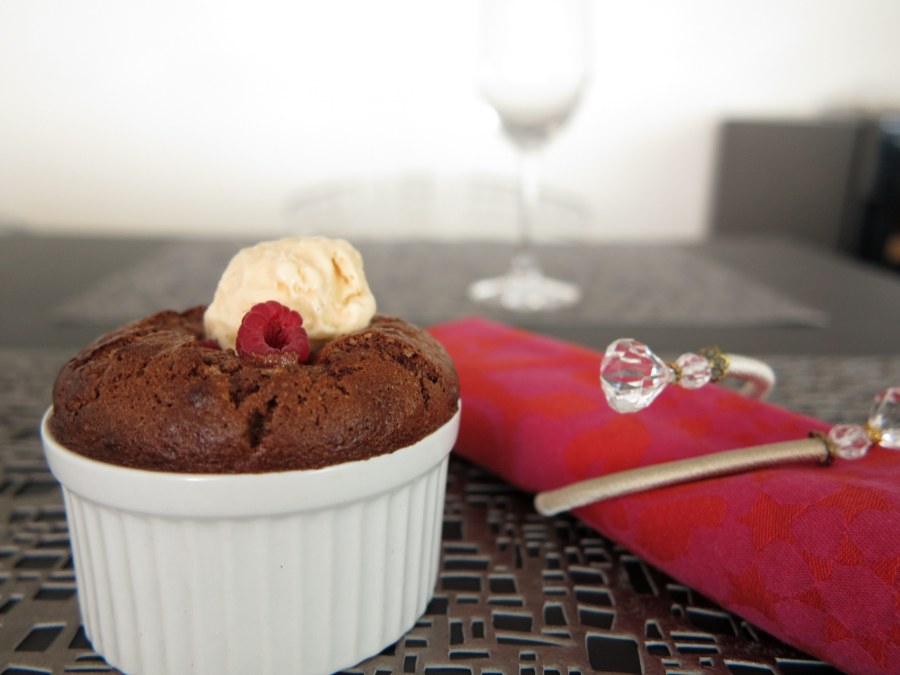 Chocolate & Raspberry Souffle with Vanilla Ice Cream